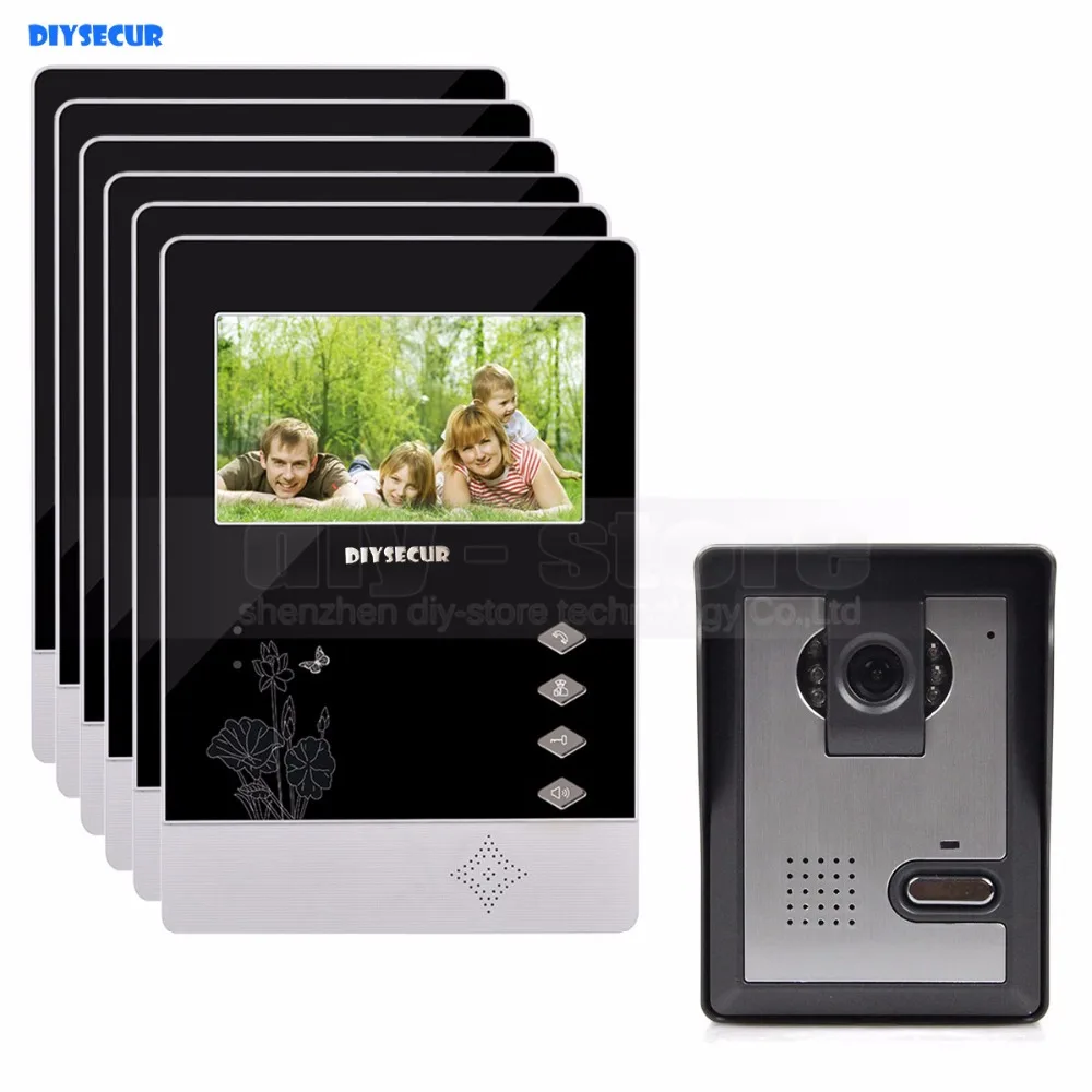 Buy DIYSECUR 4.3 inch Indoor Monitor + 600 TVLine HD Camera IR Night Vision Video Door Phone Video Intercom 1V6 and You will Save USD 0 or 0%, Because You Just Pay for 373.66 not Full Price for 373.66