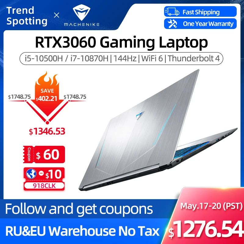 Buy Machenike T58 RTX3060 Gaming Laptop i7 10870H 16G 512G SSD 144Hz 15.6'' WiFi6 Backlit Keyboard Notebook Computer and You will Save USD 0 or 0% %, Because You Just Pay for 2186.25 not Full Price for 2186.25