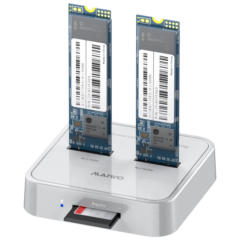 MAIWO K3016SD M.2 SATA/NVMe SSD Adapter Docking Dual Bay 10Gbps SD Card Reader Station Solid State Drive Enclosure Case US/EU